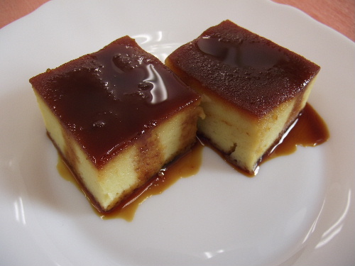 ④ ③を②の型に流し入れ、170度のオーブンで50分~1時間焼く。(受け皿に水をはる)